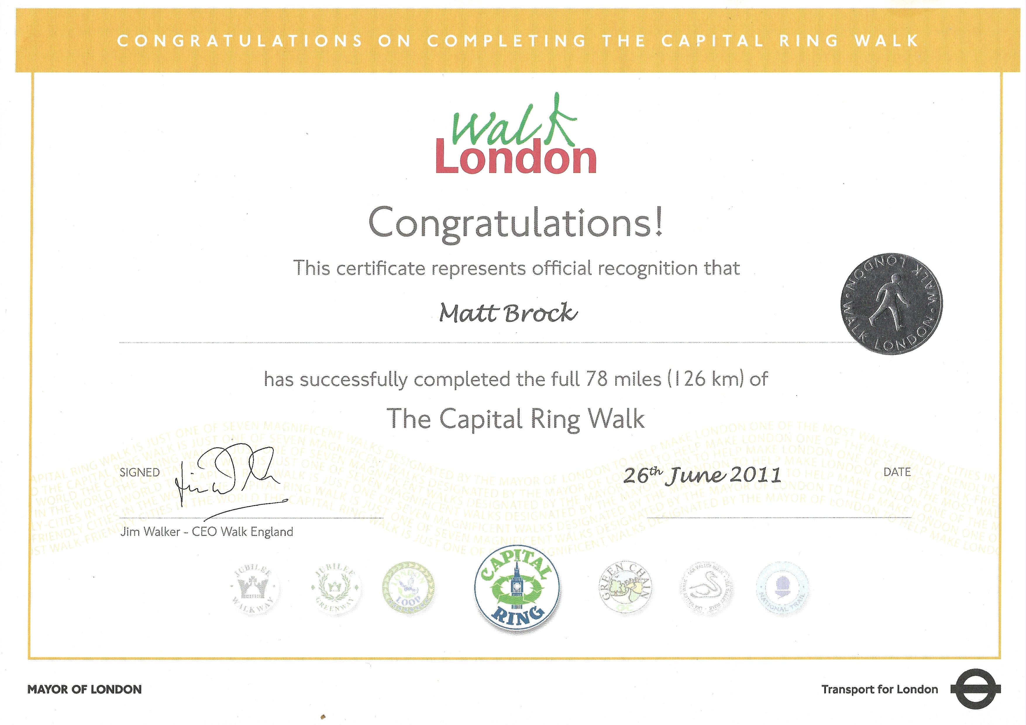 all 15 sections of London’s Capital Ring Walk, covering 78 miles in